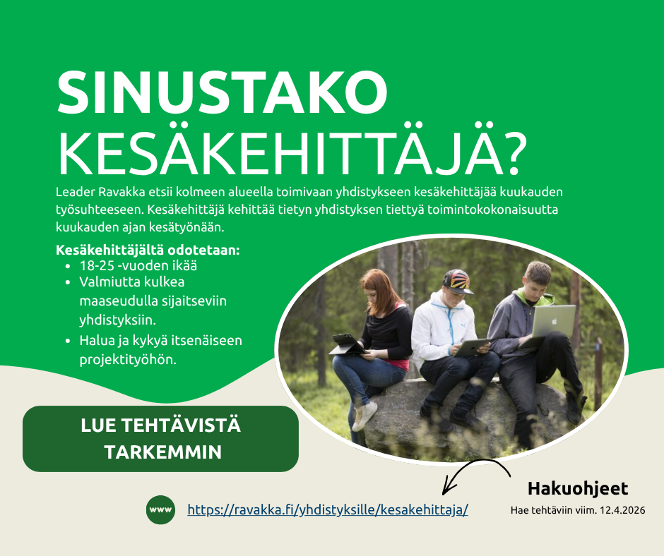 Leader-ryhmästä haettavien hankkeiden haku on jatkuva, mutta Ravakan hallitus käsittelee hankkeet valintajaksoittain.