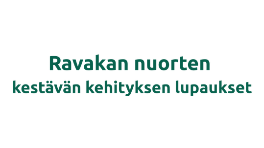 Millaisen huomisen me maaseudun nuoret haluamme itsellemme rakentaa? Kysymys saattaa kuulostaa vaikealta ja etäiseltä, mutta me Leader Ravakan nuorisoaktiivit tartuimme sen haasteeseen ja loimme omat lupauksemme toimintamme kestävyyden vahvistamiseksi. Me näemme Leader -nuorisotoiminnan väylänä luoda kestävämpää tulevaisuutta, niin ekologisesti, taloudellisesti kuin sosiaalisestikin. Olemme yksissä tuumin luoneet nämä lupauksemme Agenda 2030 -kestävän kehityksen periaatteiden pohjalta ja sitoudumme noudattamaan sitä toiminnassamme, jotta niin meille kuin tuleville maaseudun nuorille olisi luvassa valoisampi tulevaisuus.