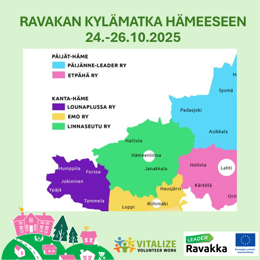 Kylämatka Lounaplussan, Linnaseudun ja Päijänne-Leaderin alueille on suunnattu aktiivisille yhdistystoimijoille Ravakan alueelta. Tervetuloa mukaan!